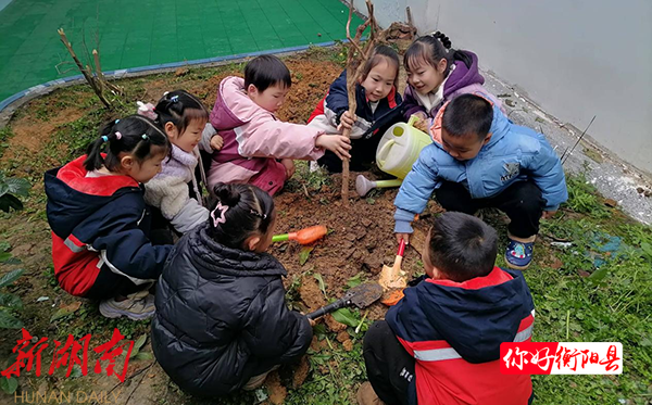 衡阳县融媒3月12日讯(记者:张兴宇 通讯员:邓奎娥 ) 3月11日,界牌镇中心幼儿园开展植树节活动。