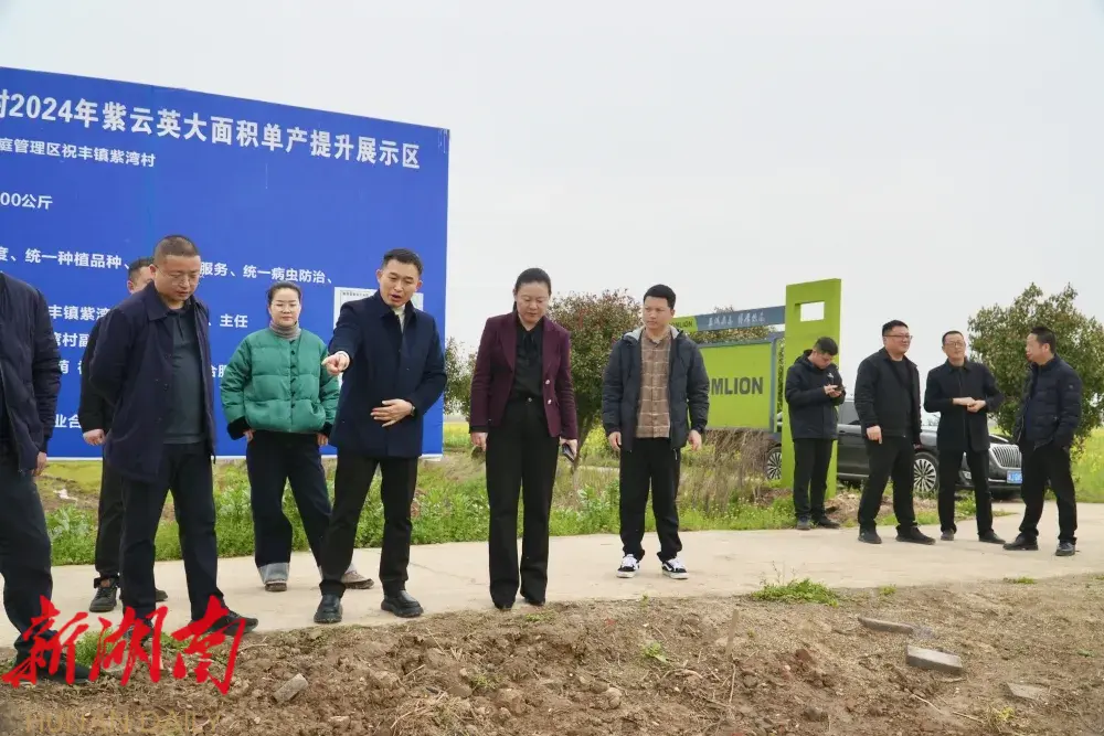 在家家红种植基地、祝丰镇民安村稻虾养殖基地、紫湾村高标准农田建设基地、区级双季稻展示区、涂家湖村育秧工厂,叶春华深入田间地头,实地查看了作物生产、养殖模式、项目建设等情况。