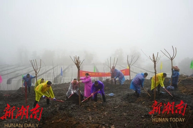湖南日报·新湖南客户端3月13日讯(通讯员 曾振科 吴繄倪)3月12日,新化县桑梓镇组织镇机关干部、“桑梓情”志愿者到洪潮村义务植树基地开展义务植树活动,为桑梓大地注入绿色动能。