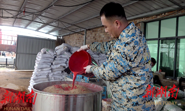 湖南日报·新湖南客户端3月13日讯(通讯员 杨尚勤)近日,新化县天华农业科技服务有限公司为种粮大户提供上门拌种服务,采用“拌种机+药物配水”,为种粮大户注入科技动能,助力春耕生产。