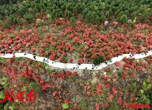 2.“云上杜鹃红,湘东第一峰”大围山,这里被誉为“湘东绿色明珠”和长株潭城市群的后花园,拥有华中地区最大的原生态野生杜鹃花群落,有超10万亩原生高山杜鹃。满山杜鹃盛开时,红霞漫山,层林尽染。今年将推出高山花海徒步线路、古风音乐、趣玩集市等特色活动,让您尽享“人在花中行,心随春风舞”的诗意。