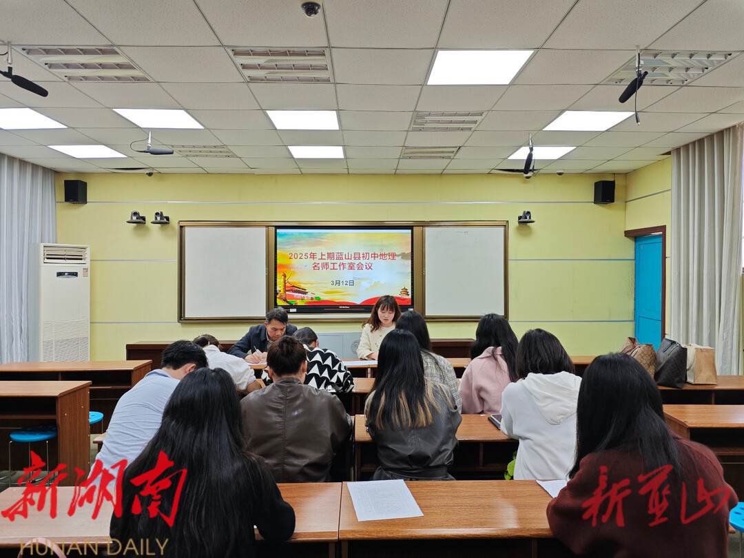 新蓝山客户端3月13日讯 (通讯员 匡丽娟 周云)3月12日,蓝山县初中地理名师工作室2025年上期工作会议在塔峰中学顺利召开。