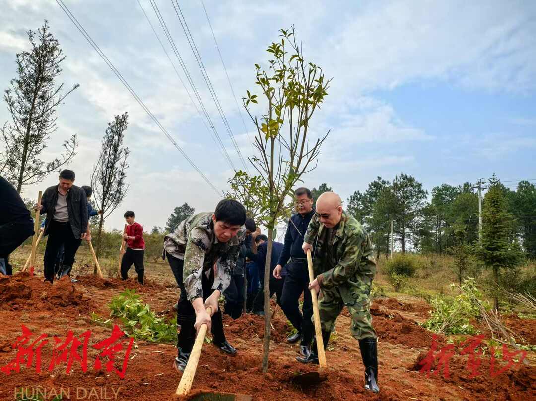 在蒋家洞村植树现场,纪检监察干部们扶苗培土、挥锹铲土,干劲十足。经过一上午的辛勤劳动,一棵棵象征廉洁的树苗迎风挺立,连片成林,为村庄披上“绿装”。活动中,干部们还为新栽树苗挂上认领标识牌,将“忠诚、干净、担当”的信念融入每一株“清风树”的养护中。