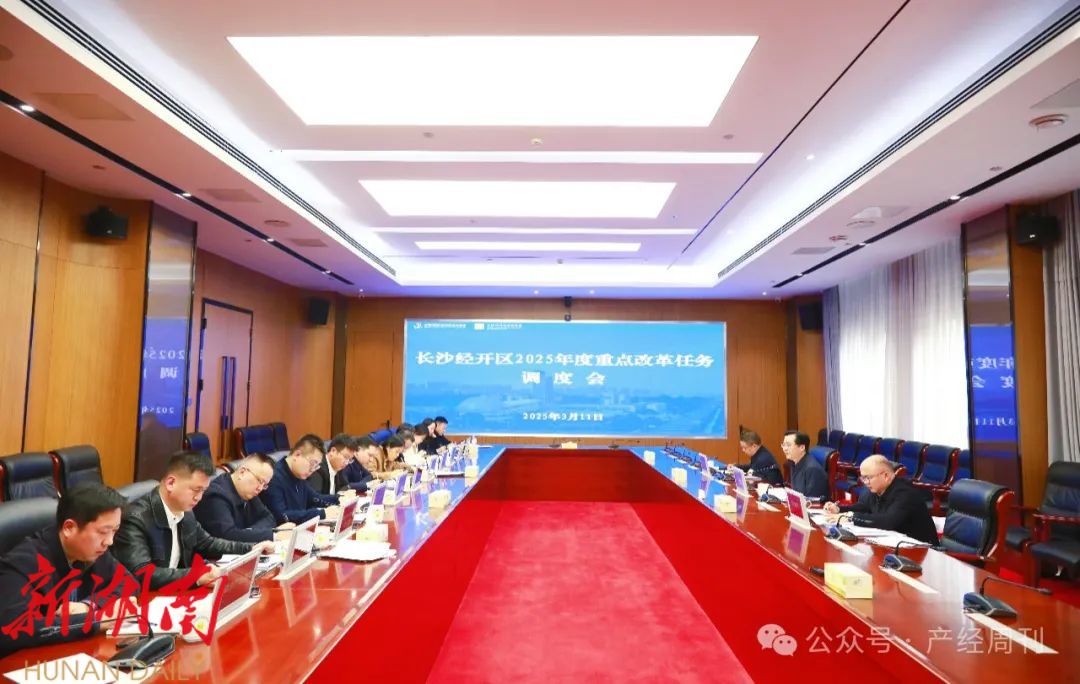 湖南日报·新湖南客户端3月11日讯(长沙经开区工作站记者 杨源) 3月11日下午,长沙经开区党工委副书记、管委会主任蒋红波主持召开长沙经开区2025年度重点改革任务调度会。他强调,今年是改革大年,是全面落实二十届三中全会精神的第一年。全区上下要坚持以改革开路、以改革破题、以改革转型,坚持市场化导向,推动园区体制机制改革加快落地见效。