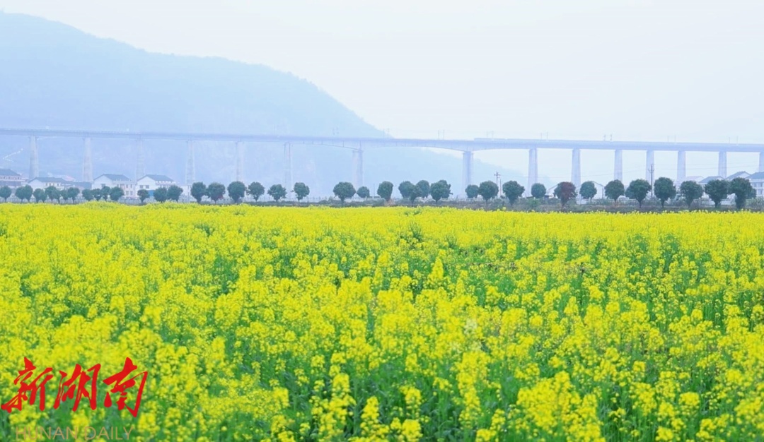 湖南日报·新湖南客户端3月13日讯(通讯员 潘雁平 蔡文琼)阳春三月,草长莺飞。连日来,冷水江市禾青镇社学里村的七百亩油菜花竞相绽放,金黄色的花海与蓝天白云交相辉映,构成一幅美丽的春日画卷。