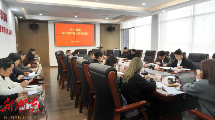 湖南日报·新湖南客户端3月13日讯(通讯员 熊俊逸)“镇上的文旅氛围越来越浓厚,我们的生意也越来越好。希望政府能够继续支持我们,一起把青山铺镇的文旅品牌打响,让更多人知道这个美丽的地方。”3月12日,长沙县青山铺镇举行农文旅产业主体座谈会,镇民生事务办、农业综合服务中心、自然资源和村镇建设事务中心、商会及天华村相关负责人与辖区十余家农文旅企业代表齐聚一堂,围绕产业规划、项目落地、资源整合等议题展开深度对话,共同探讨农文旅产业发展新路径,为打造“农文旅融合示范区”凝聚智慧与力量。