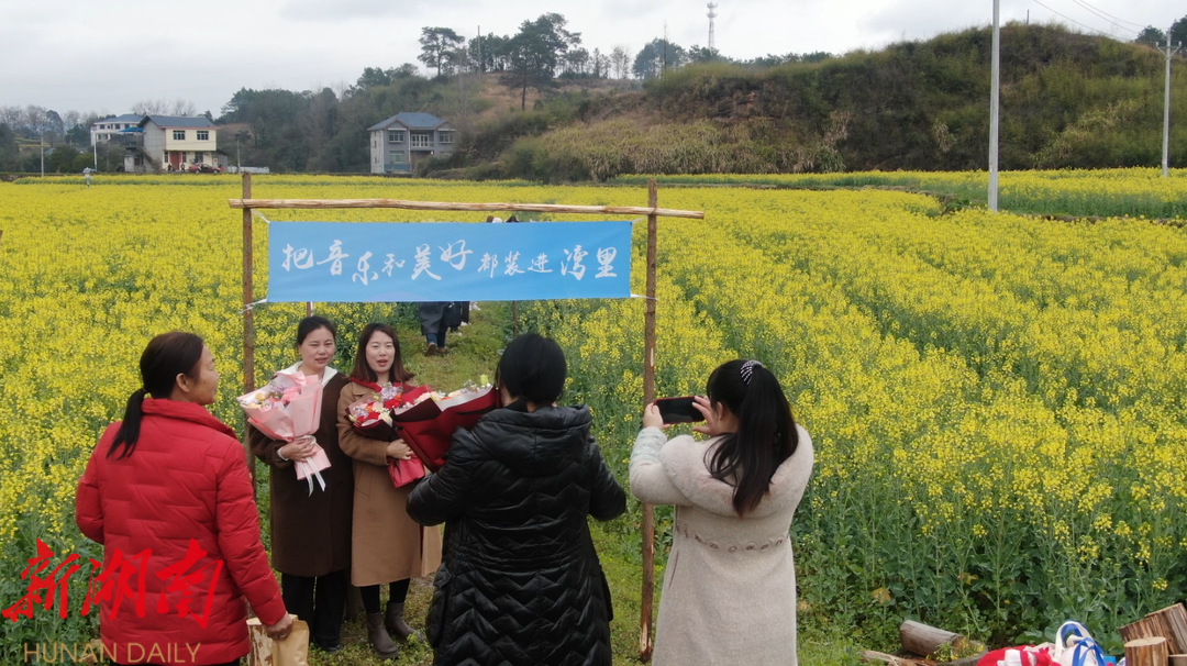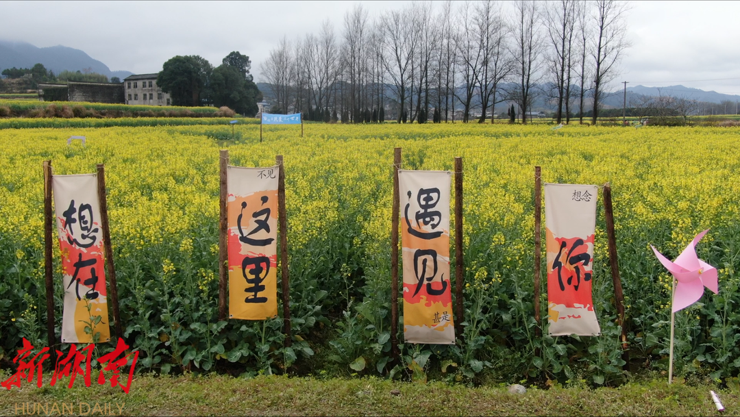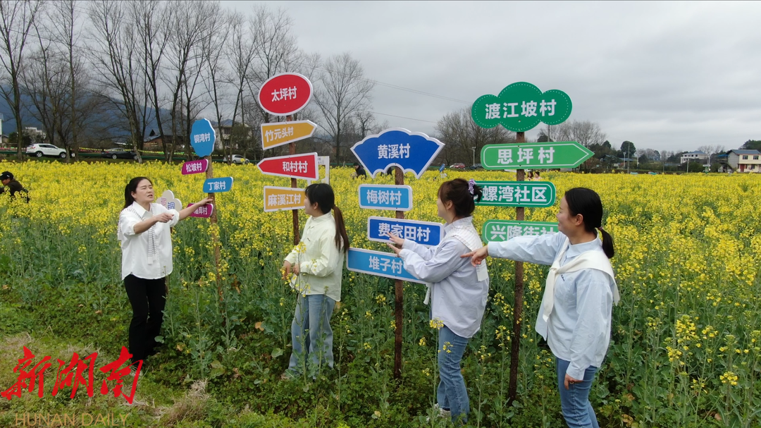 “我们提前一个月就开始谋划部署,经过广泛征求意见、反复会商、现场勘察、精心设计等环节,充分调动党员干部和群众共同参与。从前期设计、物品准备到现场布景,全部由干部职工自主完成,用最小的成本打造了这片独具特色的油菜花海。”铜湾镇党委负责人张成诗一边带领游客参观,一边详细介绍打卡景点的设置理念。