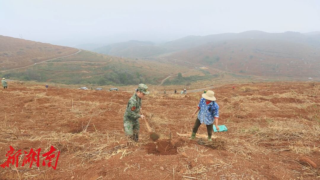 新桂阳3月14日讯( 记者 李子璇 何禹军 )眼下正值春耕春种关键时节,我县种植户们迎来了油桐种植热潮。县人武部组织民兵开展助农行动,为农忙种植添力,军民共同栽种“家门口”的共富苗。