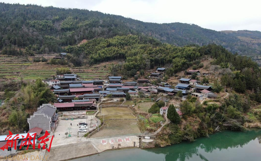 中方融媒3月14日讯 (记者:肖文晋 陈攀)从怀化出发,沿着S312省道一路向西,在中方县铜湾镇的大山深处,有一座依山傍水的村落静谧地卧于天地之间,那便是梅树村。连绵起伏的山峦将村落温柔环绕,山上植被繁茂,四季更迭,色彩各异,一条清澈见底的小溪从村前潺潺流过,奏响了大自然的乐章。