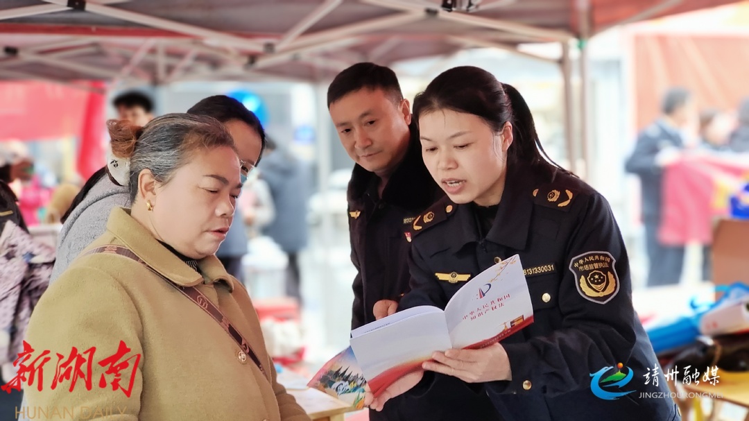 靖州融媒3月14日讯 (记者 龙俊霓 通讯员 秦明 胡凯)3月13日,靖州苗族侗族自治县市场监督管理局联合中国农业发展银行靖州支行、司法局、消防救援大队等19家单位及志愿者,在靖天广场开展以“优化消费环境,共筑满意消费”为主题的宣传活动。