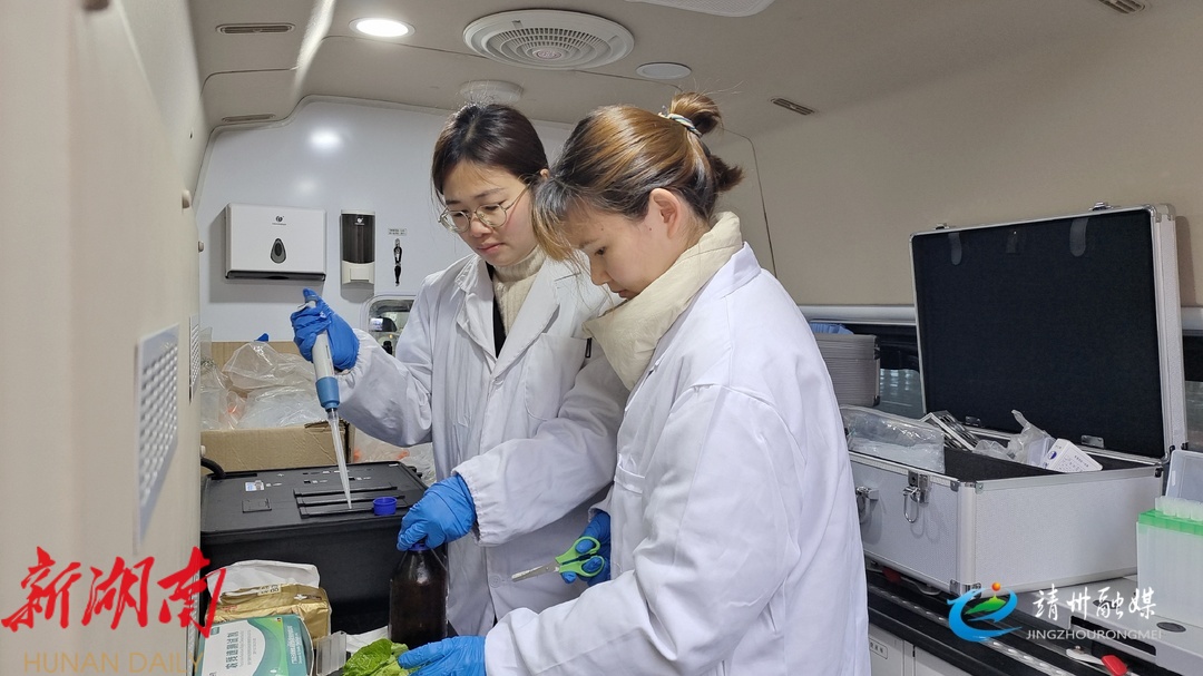 靖州市场监督管理局工作人员在现场设立了临时检测点,不少市民将采购的蔬菜送来检测。
