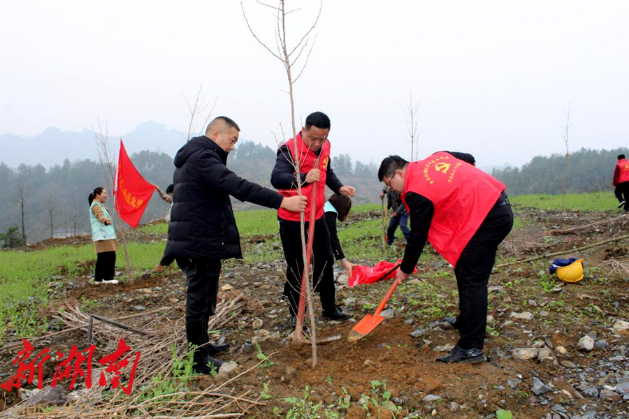 视外桃源客户端3月13日讯(通讯员:王伟杰) 春回大地,万物复苏。为迎接植树节的到来,近日,牛车河镇在柿子坪社区白杨湾省道两旁开展了全民义务植树活动,共同为牛车河镇添绿意、筑屏障。