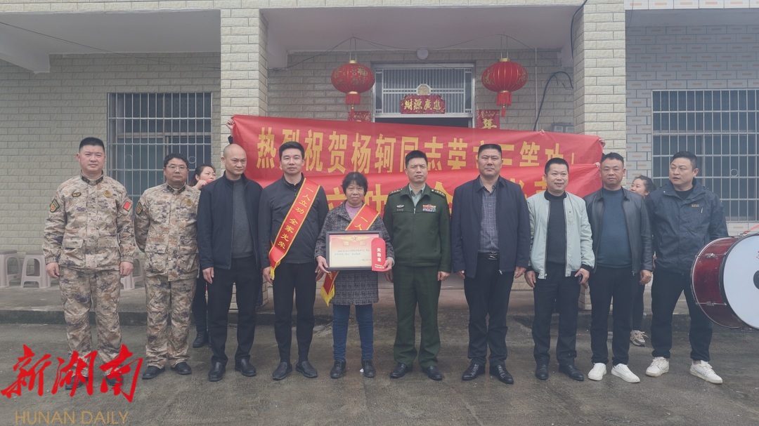 3月14日,县委常委、县人武部政委张运年率县退役军人事务局、西渡镇、岘山镇等相关部门人员,为两位在部队荣获“三等功”现役军人唐文超、杨轲送去喜报,向他们及家属致以热烈的祝贺与崇高的敬意。