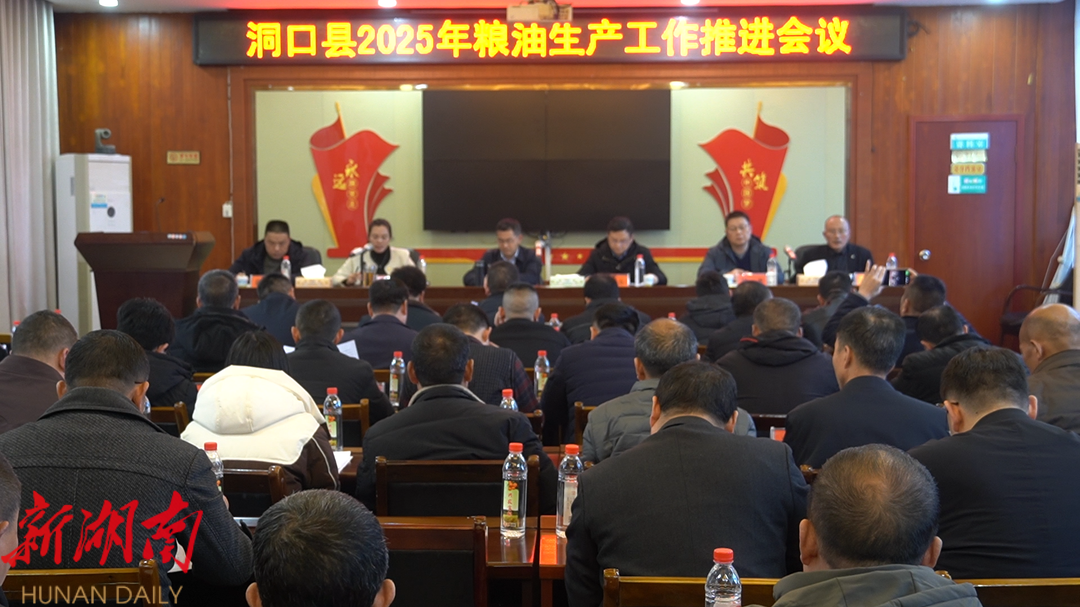 洞口融媒3月15日讯( 记者:江京晟) 3月14日下午,洞口县2025年粮油生产工作推进会议在县农业农村局召开,国家统计局邵阳调查队党组成员、副队长贺旅东,县委常委、副县长张纲学出席会议并讲话。