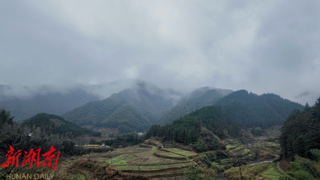 洞口融媒3月15日讯(记者:邓贝乐) 3月15日,一场春雨过后,受冷空气影响,洞口县桐山乡大道村出现了如梦似幻的云雾景观。从高空俯瞰,整个村庄被云雾环绕,山峰与房屋在云雾中若隐若现,宛若仙境。