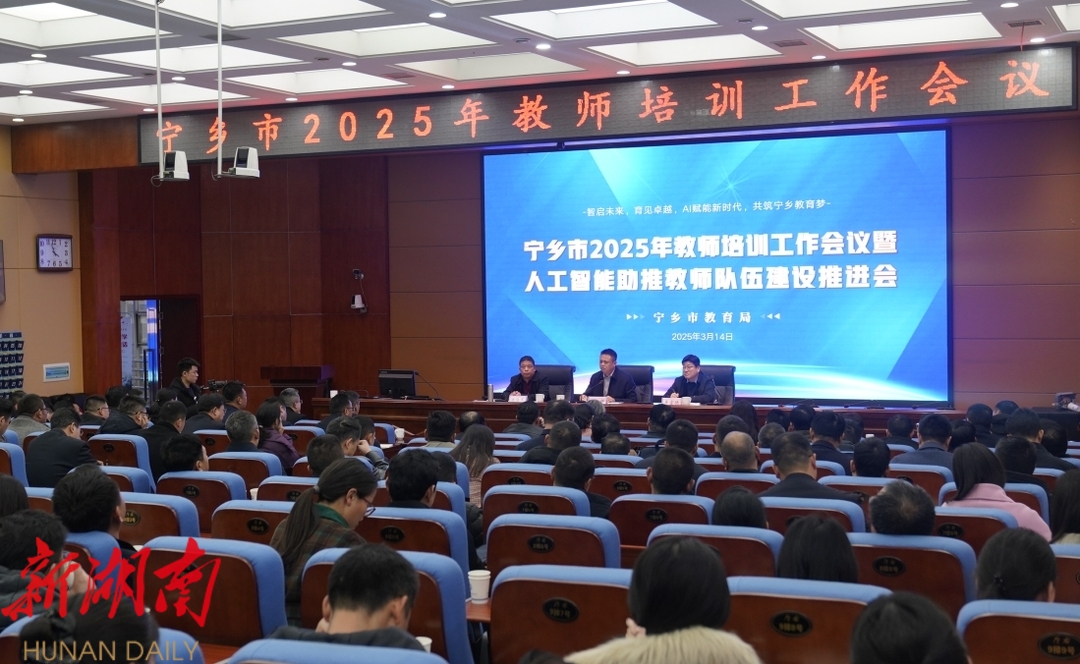 湖南日报·新湖南客户端3月15日讯(通讯员 刘石江 谢彩飞 蒋丽娟)3月14日,宁乡市2025年教师培训工作会议暨人工智能助推教师队伍建设推进会在市教师进修学校报告厅召开。