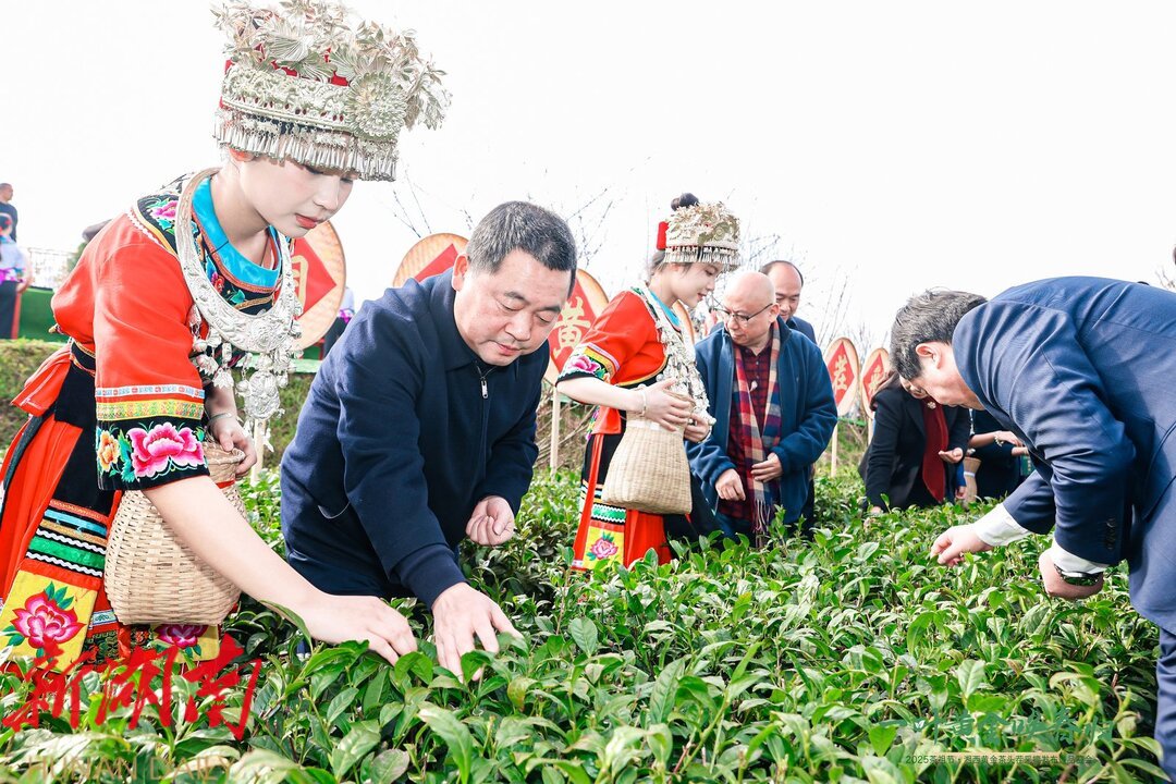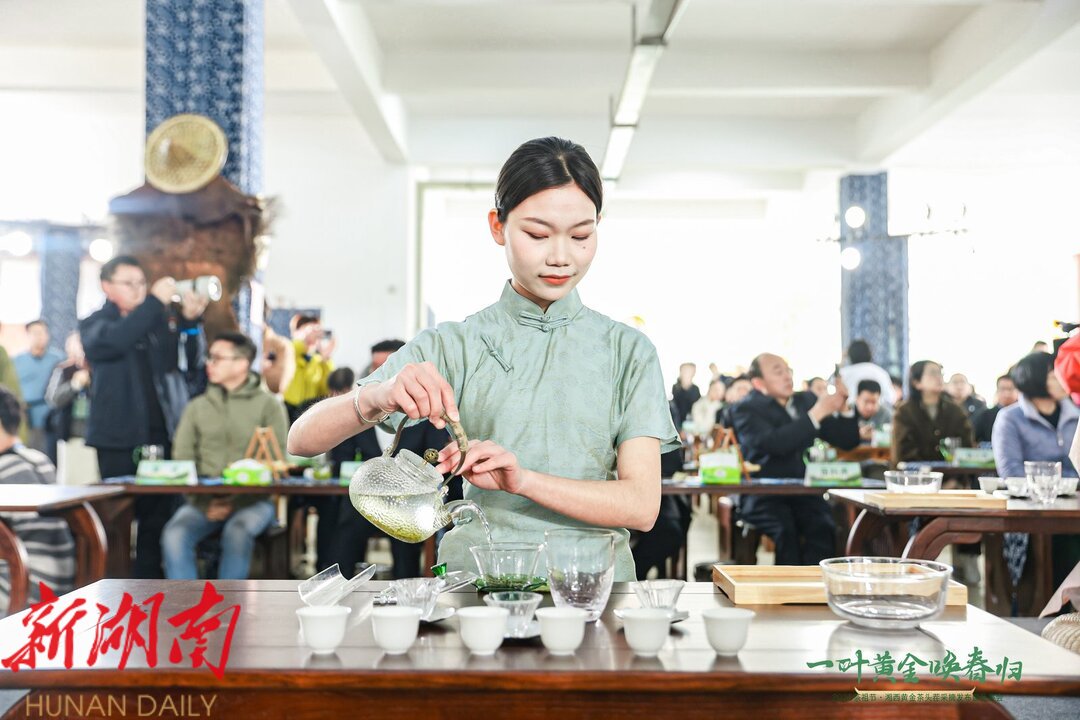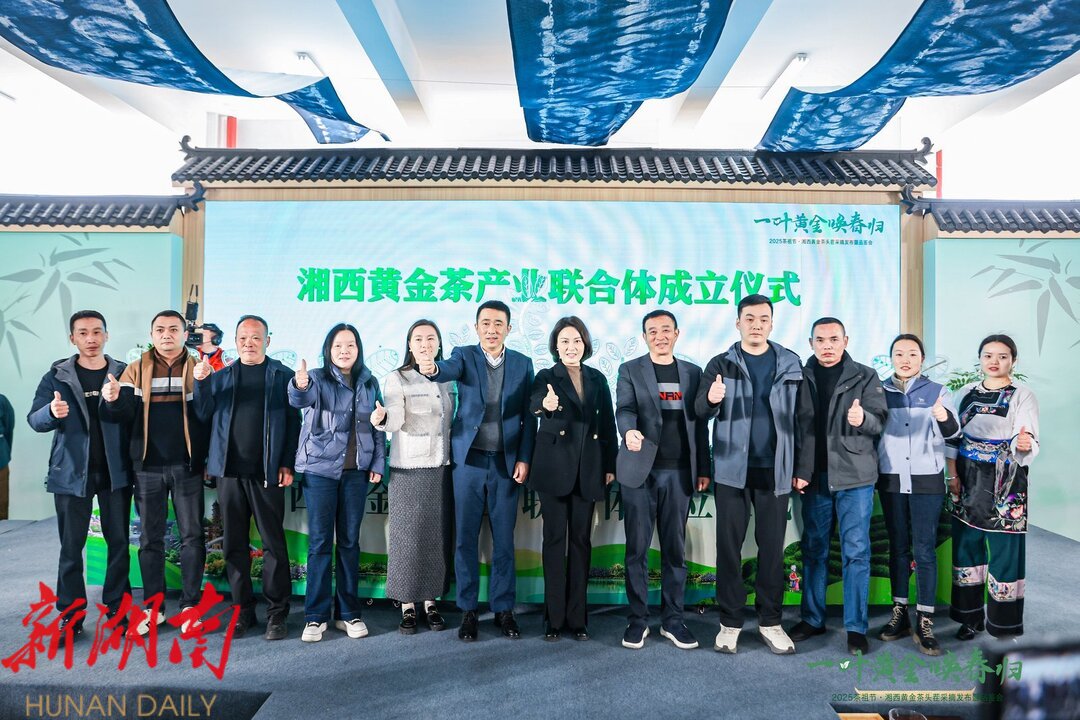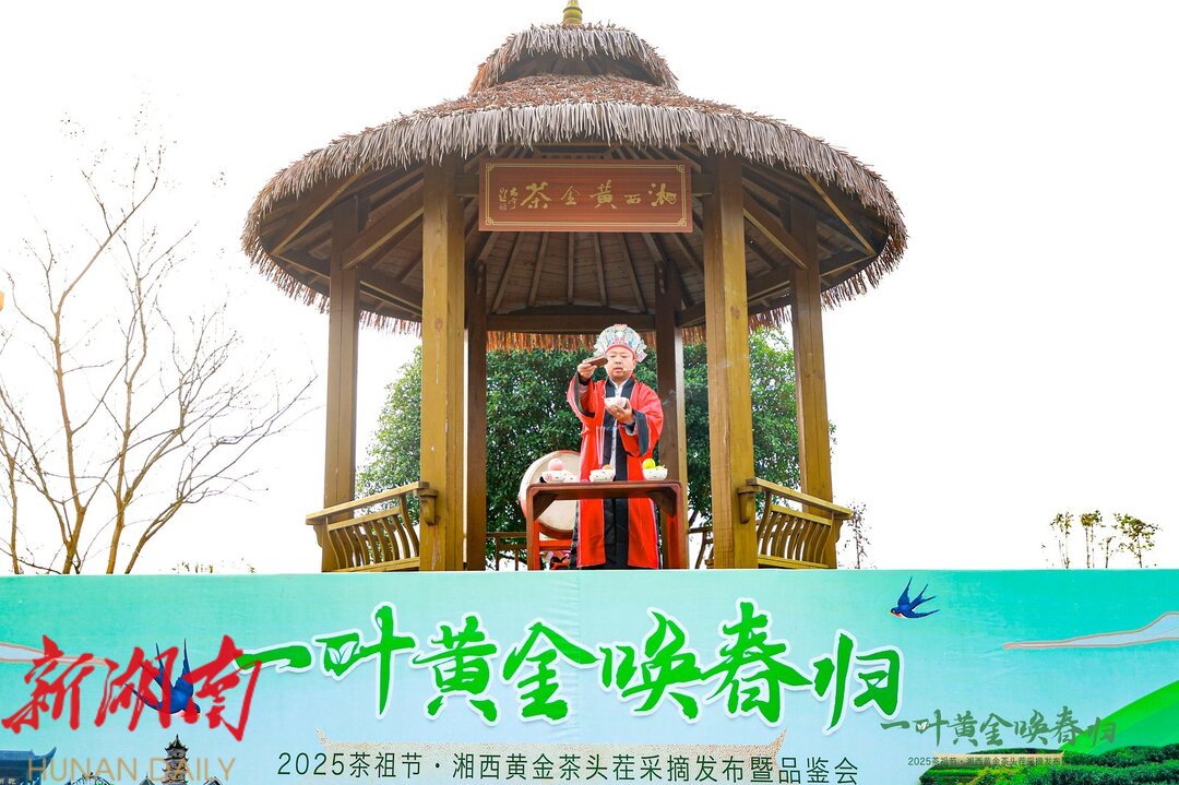 3月16日,2025茶祖节·湘西黄金茶头茬采摘发布暨品鉴会在吉首市湘西黄金茶科技博览园启幕。活动通过开园采摘、产线奠基、文化展演三大板块,全方位展现湘西茶产业创新发展图景。