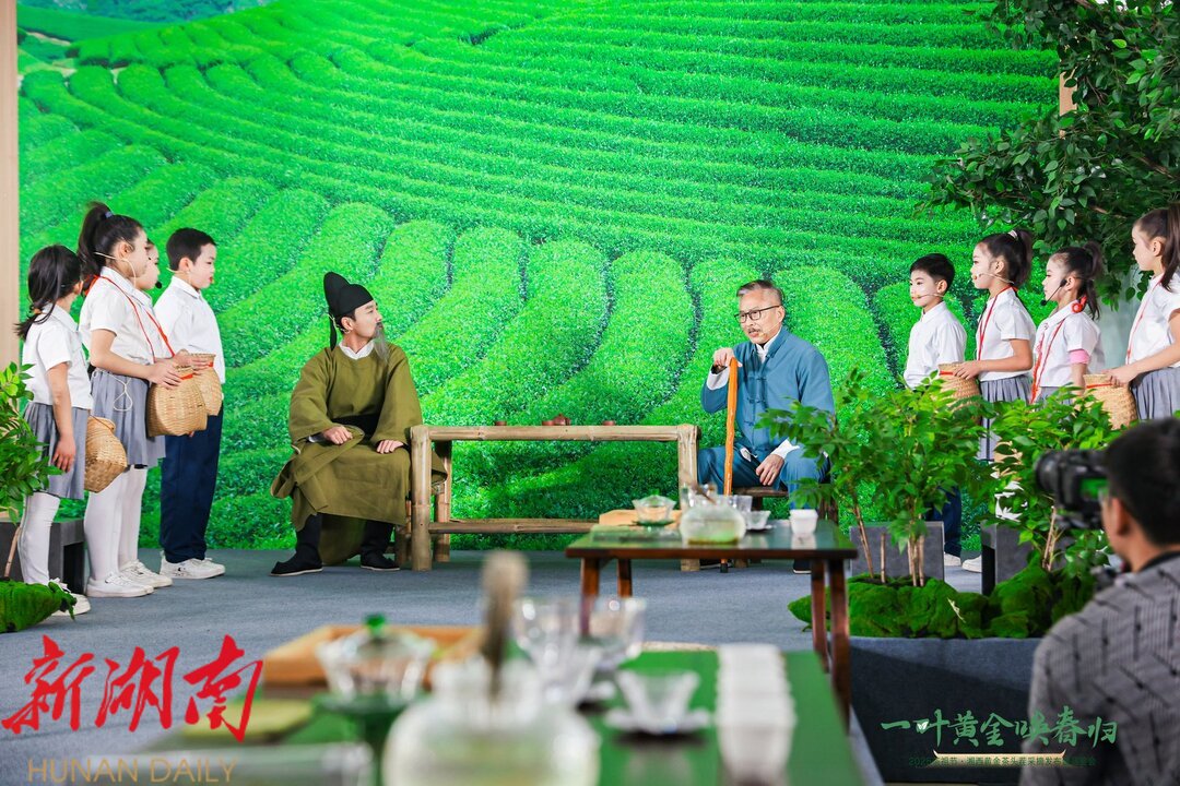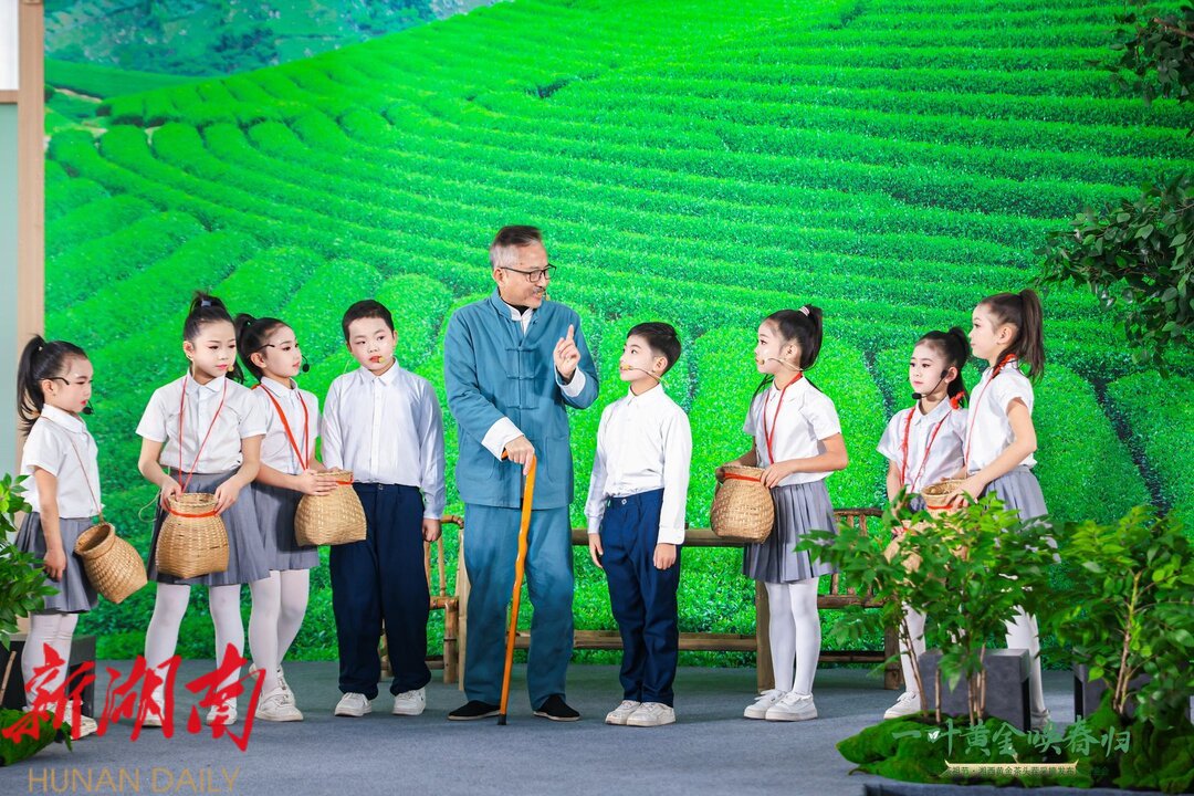 紧接着的是一场别开生面的沉浸式情景剧演绎,通过《新茶迎老友》《一叶乾坤大》《一焙岁月长》《金叶富乡民》《茶语漫岁华》《相聚春天里》六大篇章,以艺术化的手段演绎了湘西黄金茶从一片绿叶到一方富民产业的发展历程,讲述了湘西人民与茶叶之间的历史渊源和深厚情缘。东茅街茶馆·云梦山海创始人简名在活动中特别分享了新兴茶馆的经营理念和成功经验。活动期间同步成立吉首市茶产业发展联合体,并为芒趣研学基地授牌。