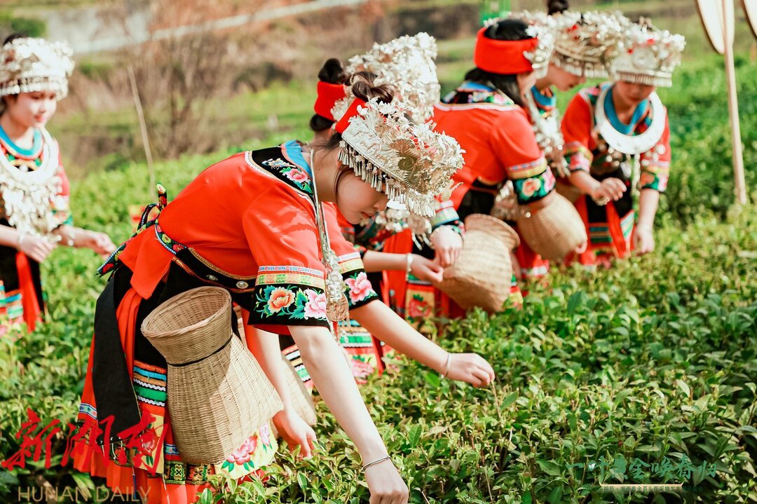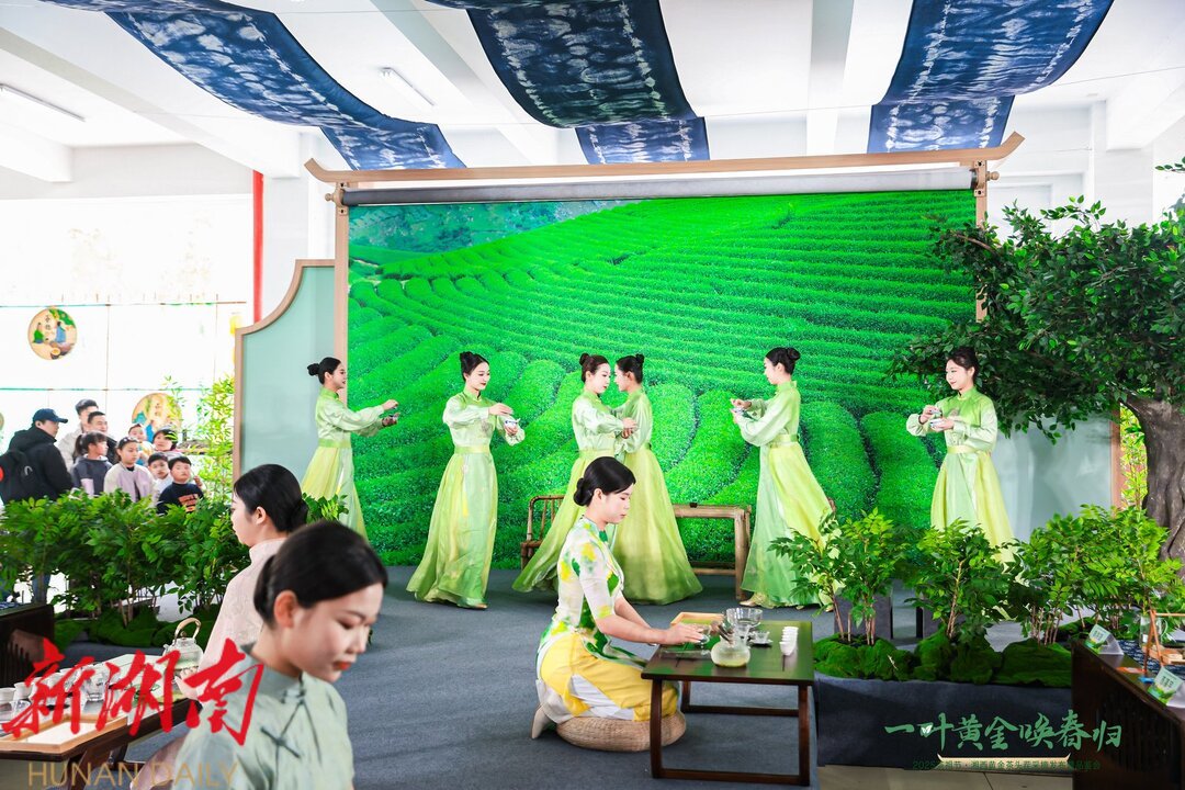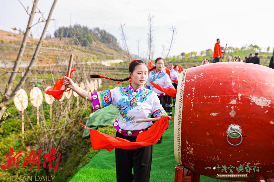 上午9点,苗鼓声声拉开活动序幕。在庄重的祭茶祖仪式后,州委常委、州委秘书长向邦伟宣布湘西黄金茶今春头茬新茶正式开采。与会嘉宾在《土苗敬茶歌》的悠扬旋律中,手持竹篓体验头采茶采摘,嫩芽清香萦绕博览园。