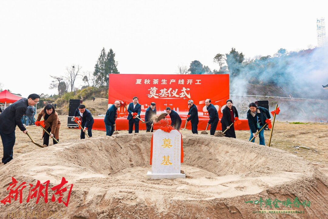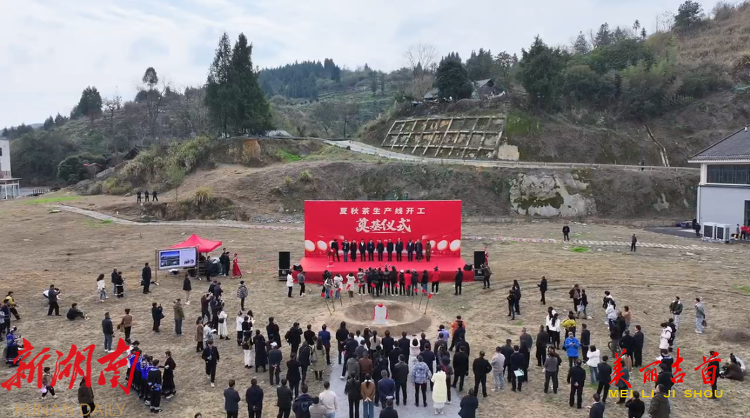 在湘西黄金茶夏秋茶生产线奠基现场,湘茶集团和华泰公司相关负责人介绍,新产线将实现年加工夏秋茶2000吨,预计带动周边2万亩茶园增产增收,为湘西黄金茶的深加工和产业链延伸奠定坚实基础。