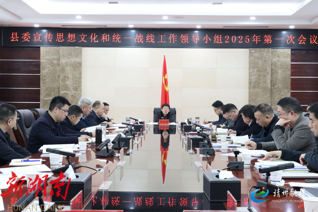 靖州融媒3月16日讯 (记者 许梦娟)3月16日,靖州苗族侗族自治县委书记黄忆钢主持召开县委宣传思想文化和统一战线工作领导小组2025年第一次会议,深入学习贯彻习近平文化思想及习近平总书记关于做好新时代党的统一战线工作的重要思想,传达学习中央、省委、市委有关会议和文件精神,研究部署2025年全县宣传、统战工作。县委副书记、统战部部长赵俊,县领导田锋、易美霞、刘绍有、罗学贤、谢科、廉剑晖、蒋和平参加。