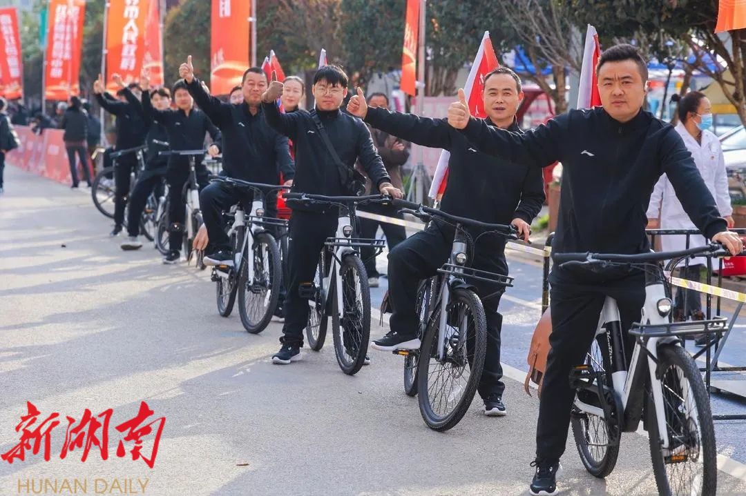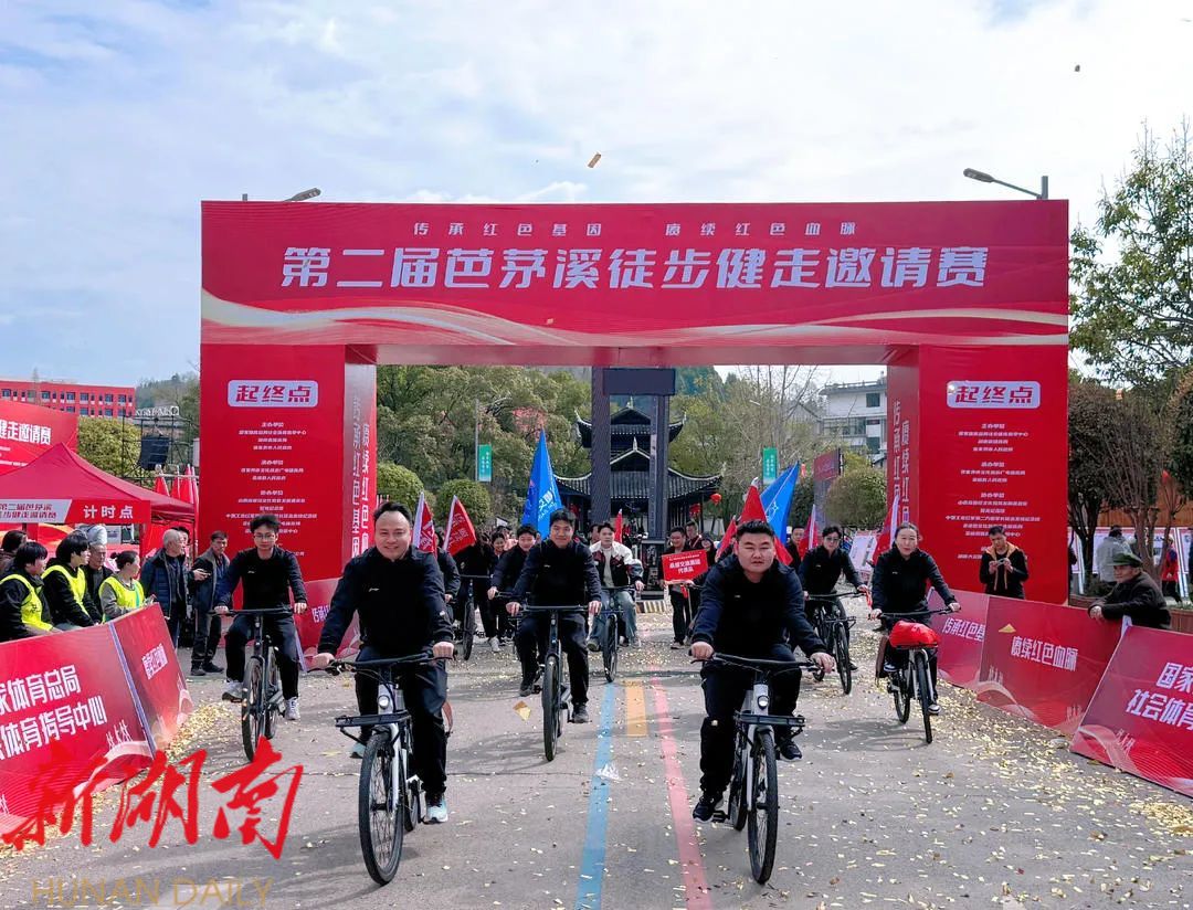 湖南日报·新湖南客户端3月16日讯(通讯员 高丽文 郭军)3月16日,第二届芭茅溪徒步健走邀请赛在桑植县举行,吸引了来自全国各地的徒步爱好者积极参与。在这场充满活力的赛事中,桑植县交旅集团干部职工组成的骑行方阵格外引人注目,成为赛场上一道亮丽的风景线。