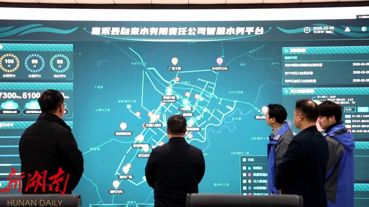 走进盘江水厂的智慧水务平台调度中心,工作人员轻点鼠标,全县各水厂运行状态一目了然。这个平台就像城乡供水的“智慧大脑”,24小时自动预警异常水压,一旦发现问题,1小时内安排人员到现场,小型管网问题2小时处置完毕。过去,嘉禾农村供水管网老旧,漏损严重,村民常为水质、水压发愁。嘉禾县自来水有限责任公司以物联网、大数据为突破口,构建了以盘江水厂为核心,金山水厂、三百蹬水厂、塘村水厂为辅的城乡供水管网互联互通网络体系,铺设了450多公里输水管网、7200多公里配水管道,建成了覆盖行政村的供水网络。城乡供水管网漏损率从原来的40%降至8%,城乡水质达标率达100%,惠及城乡居民10万余户。