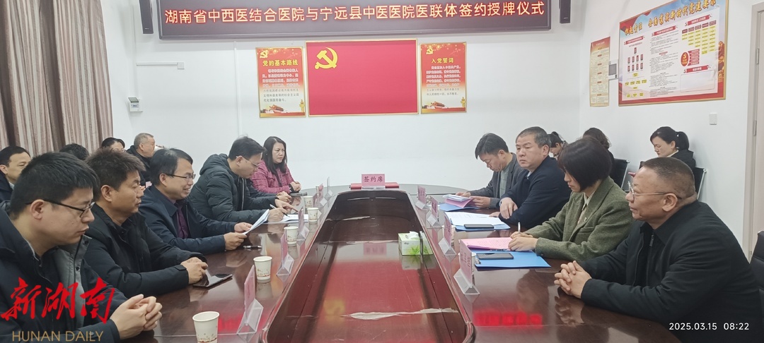湖南日报·新湖南客户端3月17日讯 (通讯员 骆丽霞) 近日,湖南省中西医结合医院与宁远县中医医院实现医联体合作,省中西医结合医院党委委员、副院长肖长江等14名专家一行来到县中医医院,举行签约授牌仪式并开展惠民义诊教学活动。县人大常委会副主任郑曦主持仪式 ,副县长曾彩平出席签约授牌仪式。