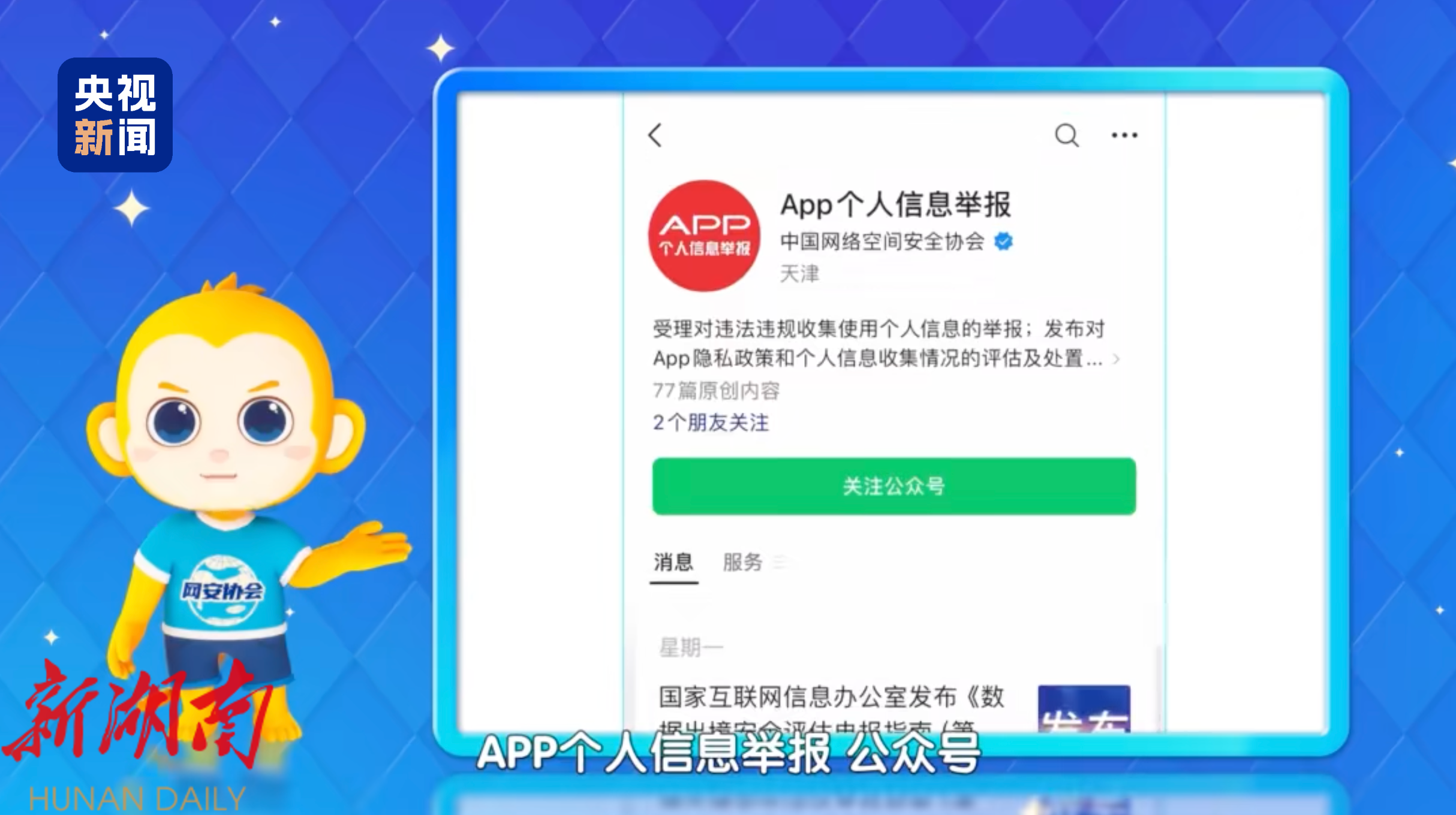 方式二:通过微信搜索App个人信息举报公众号或扫描二维码关注App个人信息举报公众号点“我要举报”
