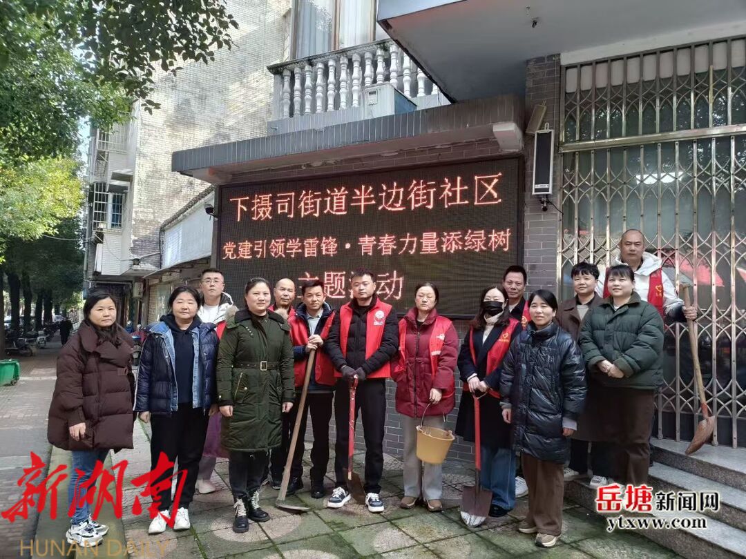 岳塘融媒3月13日讯 (通讯员:姜桔萍)为进一步弘扬雷锋精神,近日,下摄司街道半边街社区新时代文明实践站组织开展“党建引领学雷锋·青春力量添绿树”主题志愿服务活动,吸引众多党员、群众志愿者共同参与。