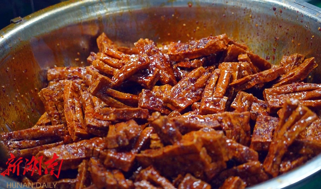 湖南瑶妹食品有限公司总经理王爱玲:“一定要保证,第一不能把豆腐搅碎,要从边上搅,不能从中间搅,这样容易把豆腐搅烂,保证豆腐完整性,然后还要让它吸满汤汁和辣椒油。”