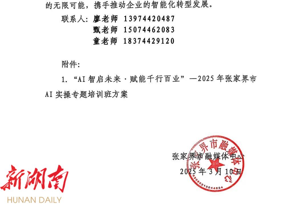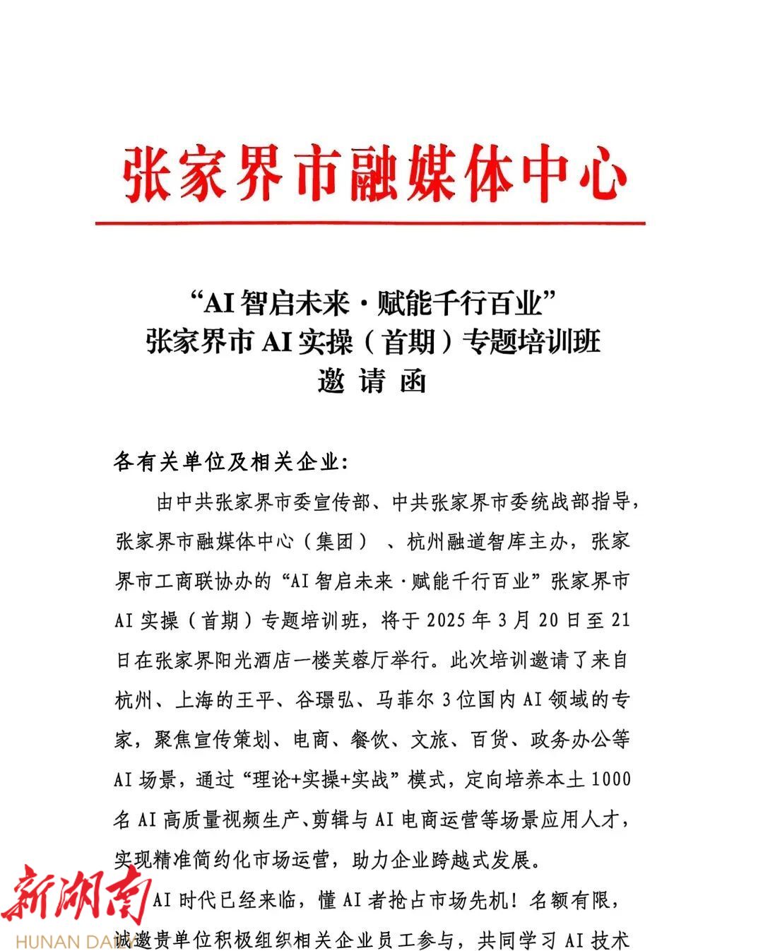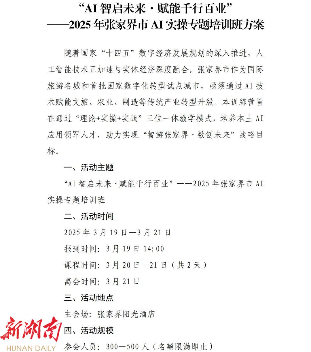 【邀请函】张家界市AI实操专题培训班