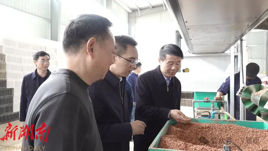 在岳阳国家农高区惠众粮食产业园智慧育秧中心,龚昕实地查看了高速育秧播种流水线、催芽室、烘干中心和农资配送中心,详细了解了中心的智慧育秧、社会化服务、粮食烘干、加工、仓储功能情况。随后,龚昕来到林林家庭农场,实地调研其秧田育秧、农资设施配备、水稻种植效益等情况。