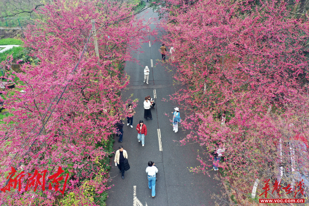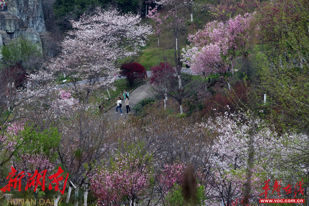(长沙县浔龙河樱花谷的万株樱花迎风摇曳,为游客们带来美不胜收的体验。张京明摄)
