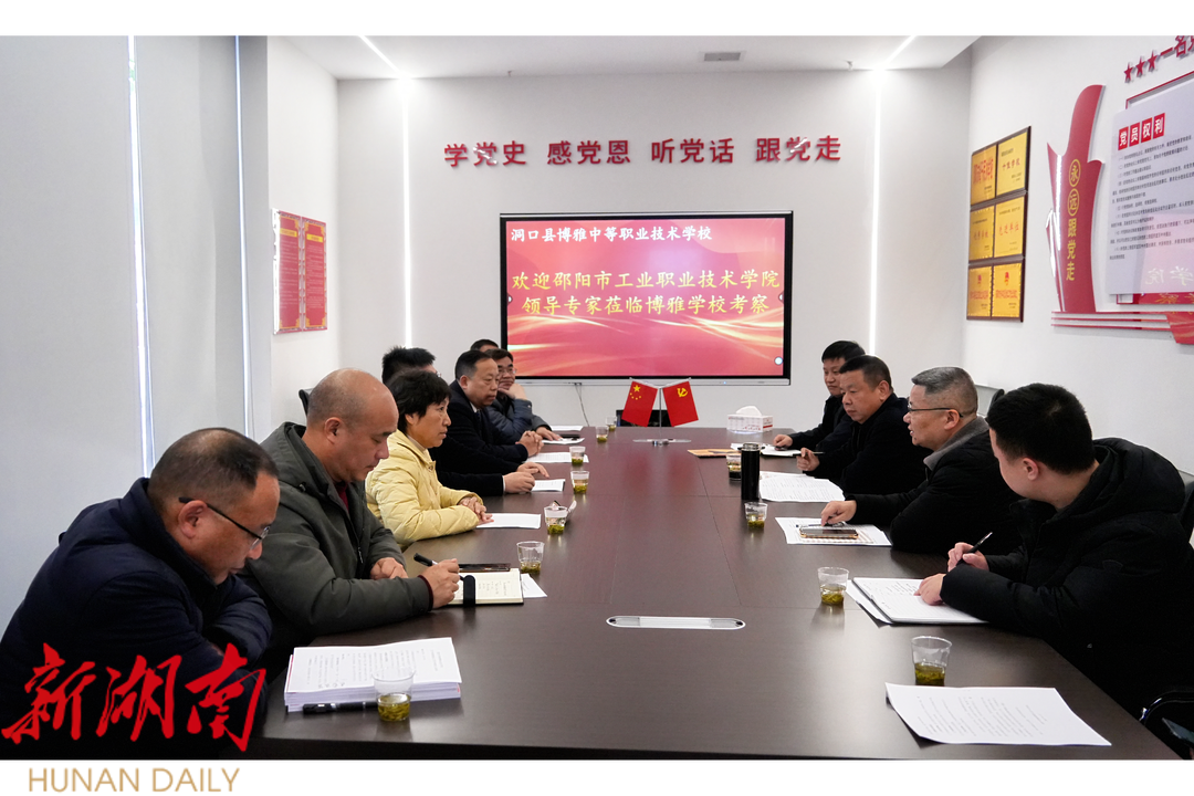 洞口融媒3月18日讯(记者: 肖皓静 通讯员:刘鹏) 3月18日,邵阳工业职业技术学院党委书记欧阳学率队到洞口县雪峰博雅学校开展"3+2"中高职衔接合作办学专题调研,进一步深化职业教育领域校际合作,推进职业教育高质量发展。县教育局主要负责人参加。