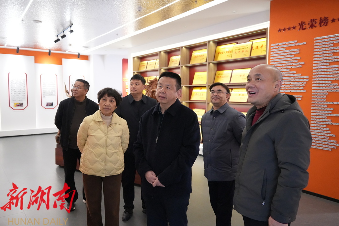 欧阳学一行先后参观了雪峰博雅学校陈列馆、工业机器人实训室、新能源汽车制造与检测实训室、工艺美术墨晶石雕实训作品室、电商实训室、茶艺实训室。欧阳学对该校 "产教融合、校企双元" 的办学模式给予高度评价,特别点赞了 "校企协同育人" 的专业办学特色。