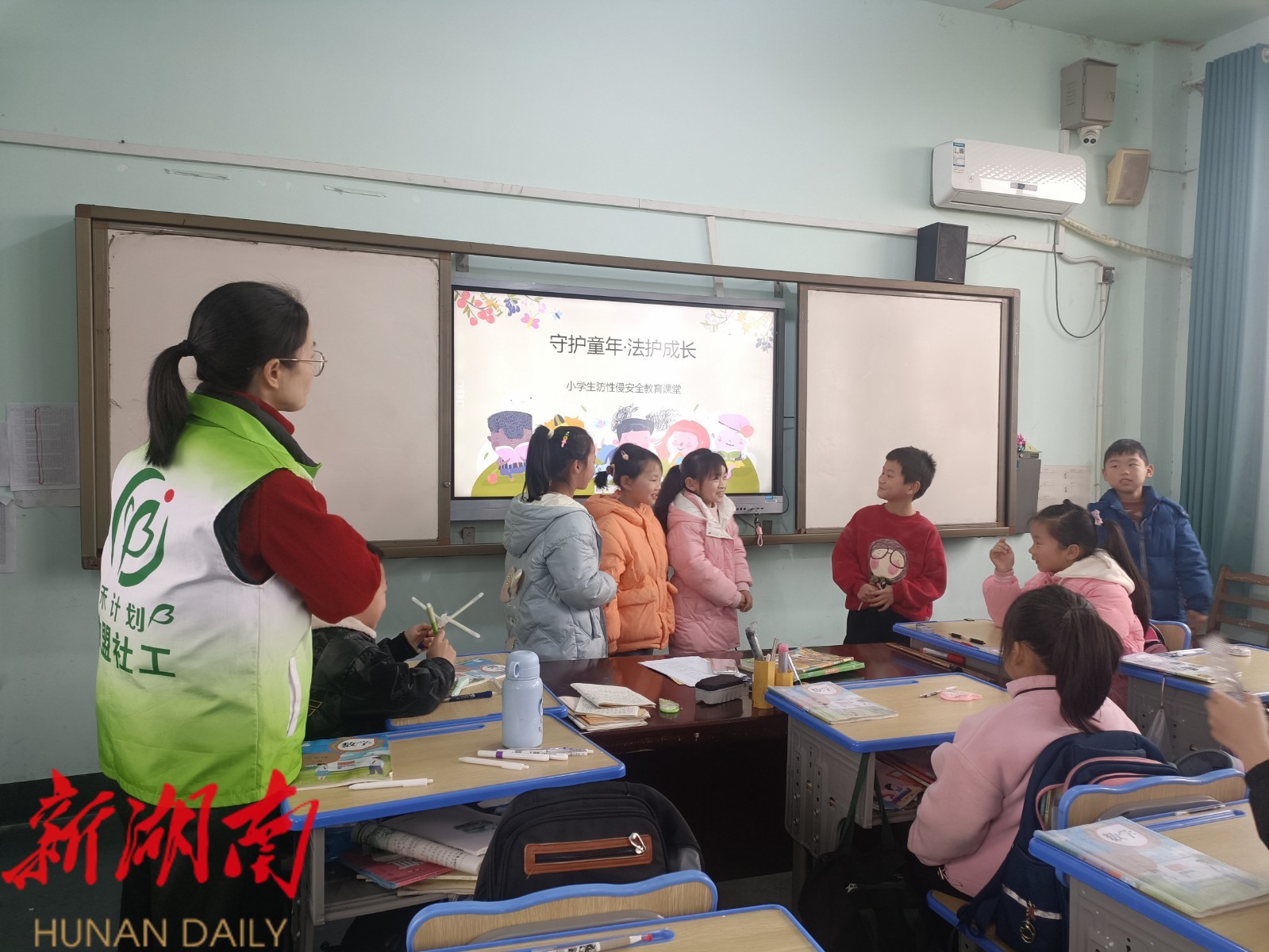 湖南日报·新湖南客户端3月18日讯(通讯员 黄芳 )近日,湘阴县岭北镇民政社工站联动镇妇联、躲风亭中学、“红堂会”志愿者,为躲风亭中学小学三年级学生带来了一场干货满满的防性侵安全教育知识学习,为孩子成长“撑伞”护航。
