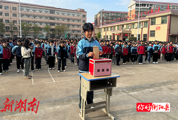 衡阳县融媒3月18日讯(通讯员:易梦雨) 3月17日,衡阳县西渡中学全体师生齐聚操场,开展“同升一面旗·共献一份爱”主题“一元捐”活动。