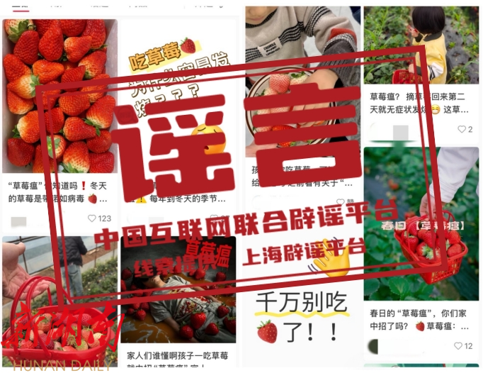 近日,部分社交平台出现大量有关“草莓瘟”的“善意提醒”,称“孩子吃了草莓就会发烧咳嗽、上吐下泻”“草莓上农药残留量大”“草莓带有诺如病毒”“大棚里种出来的草莓是反季水果”,建议大家近期不要食用草莓。经核查,这些说法都违背了农业常识,可能严重误导公众。