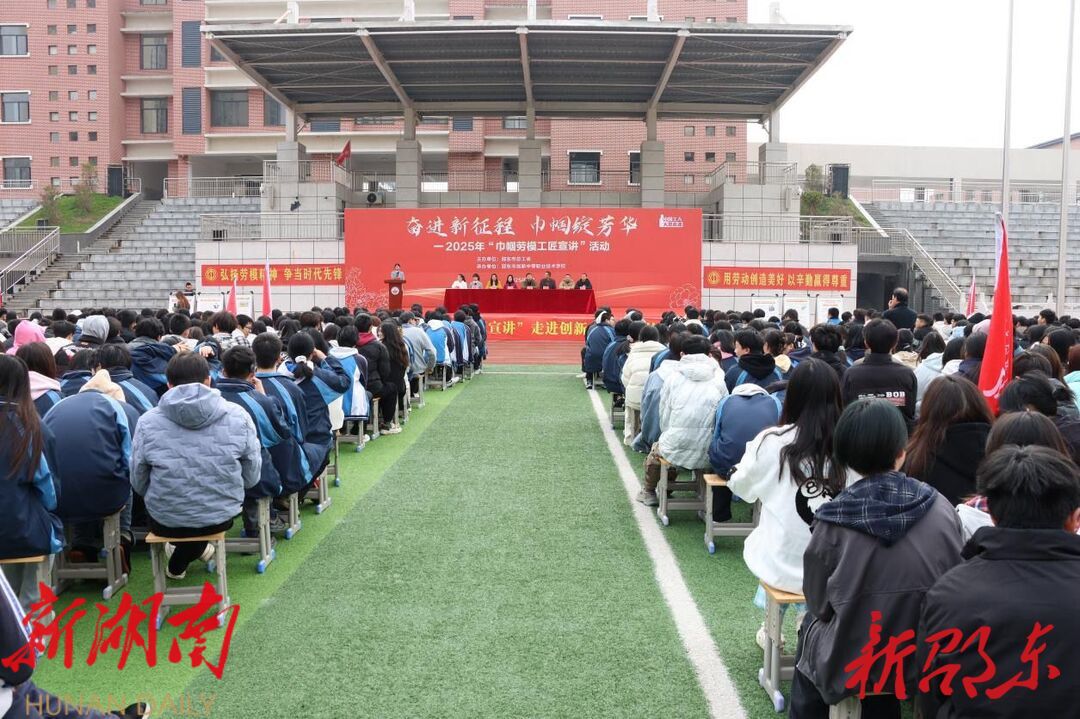 总工会在邵东市创新中等职业技术学校举行“巾帼劳模工匠宣讲”活动。邀请全国工会代表、邵阳市劳动模范朱艳红和