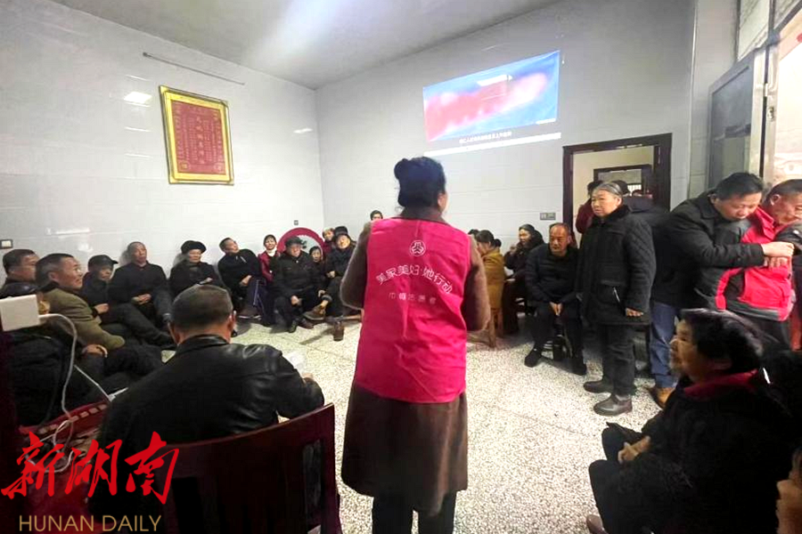 巾帼志愿者进行屋场会宣讲