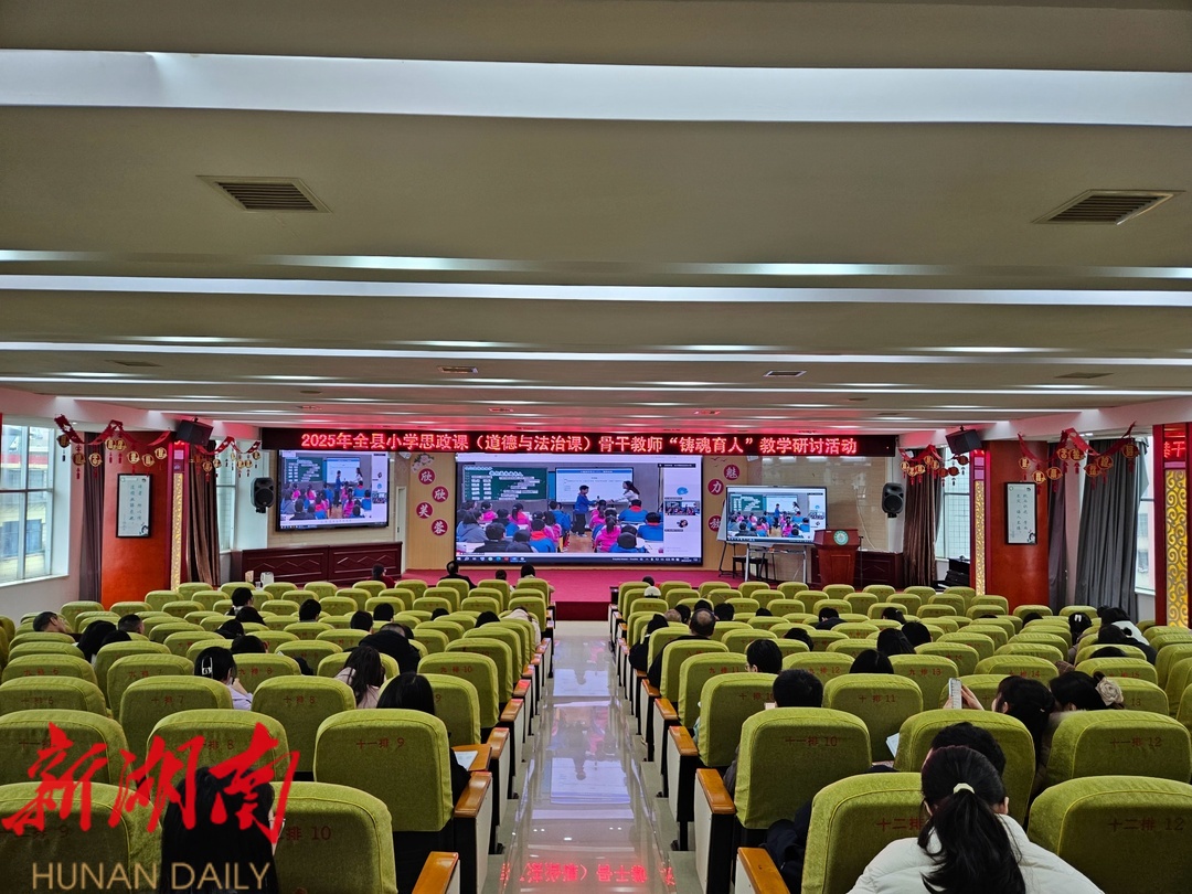 新桂阳3月19日讯(记者 李玮嘉) 3 月 17 日,2025年全县小学思政课(道德与法治)骨干教师“铸魂育人”教学研讨活动在县芙蓉完小开展。