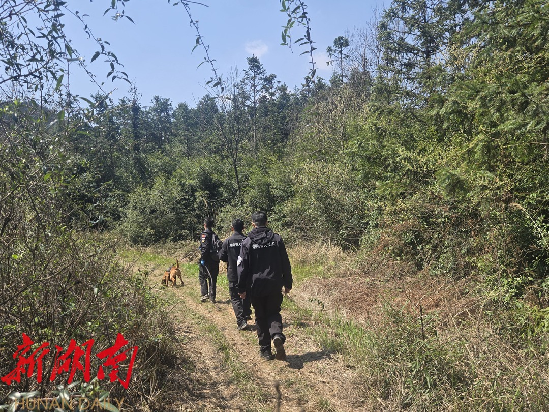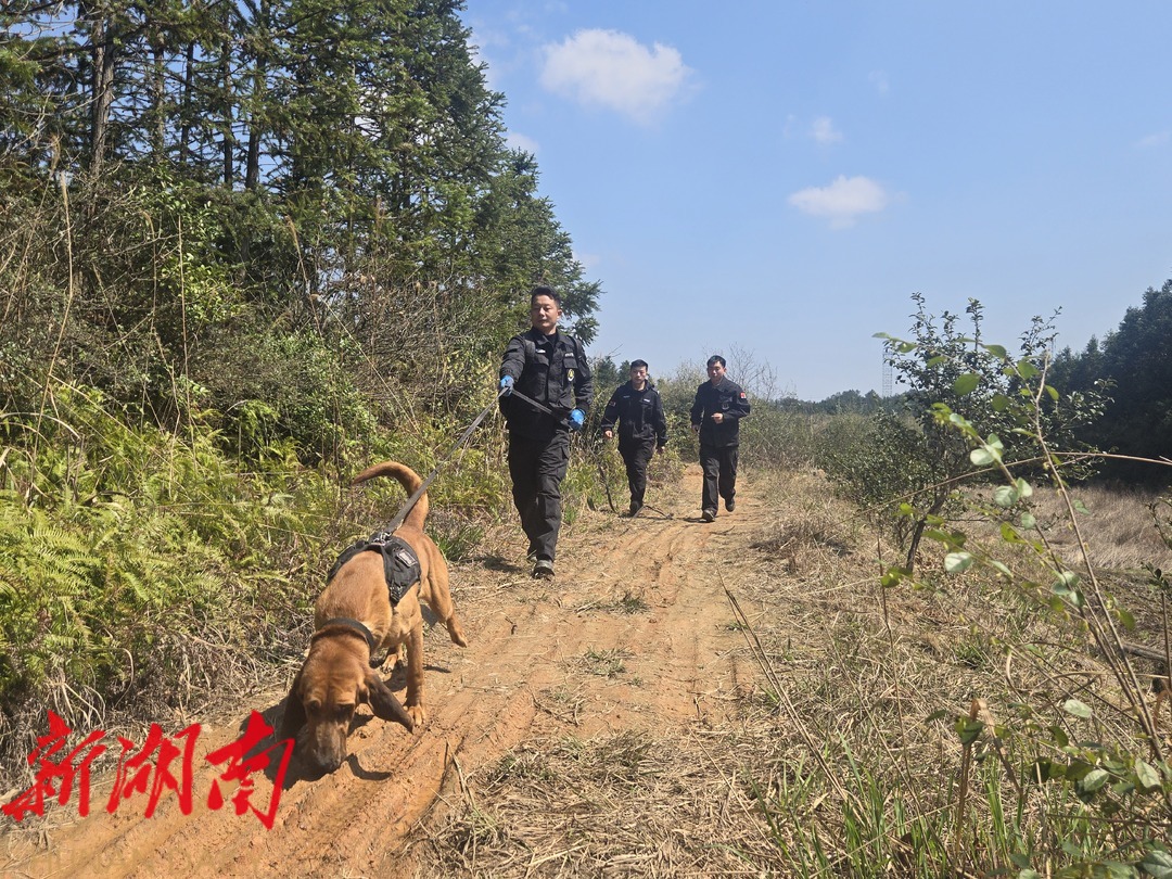 新桂阳3月19日讯(记者 李子璇 欧阳宇轩) 近日,我县公安机关接到一起村民走失报案,县公安局刑侦大队随即调派民警携带警犬进行追踪搜救,最终经13小时将走失患病村民平安寻回。
