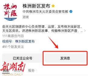 第一步:进入株洲新区发布公众号 ,点击发消息