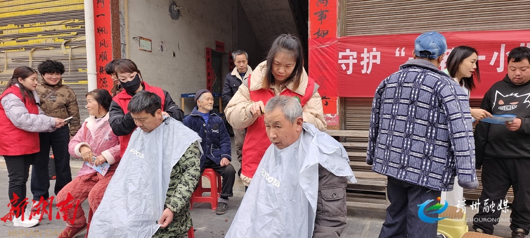 靖州融媒3月19日讯 (通讯员 胡秀琴 吴兴梅 李曼华) 3月18日,靖州苗族侗族自治县寨牙乡社工站开展志愿服务活动,为群众免费理发,宣传普及国家民政救助政策与健康养生知识,以暖心服务传递温暖,促进社区和谐发展。