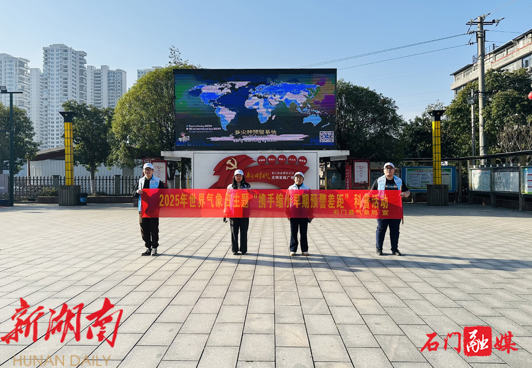 新石门客户端3月19日讯(通讯员 刘晓荣)在第65个“世界气象日”即将来临之际,石门县气象局紧扣今年气象日主题,联合学校、乡镇及村(社区)等多方力量,开展“携手缩小早期预警差距” 系列线上线下宣传活动,广泛普及气象科学知识,提升公众防灾减灾能力,为公众呈现了一场气象科普盛宴。