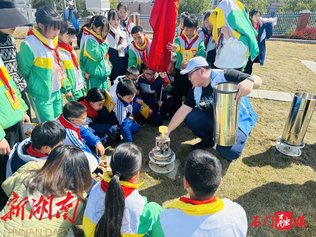 课后,30名学生走进石门国家基准气候站,实地参观气象观测场、天气会商平台和人工影响天气设备。“原来气象站藏着这么多高科技!”学生们在互动实践中充分感受到气象科学的魅力。活动通过“理论+实践”激发青少年探索兴趣,为科学教育注入新活力。