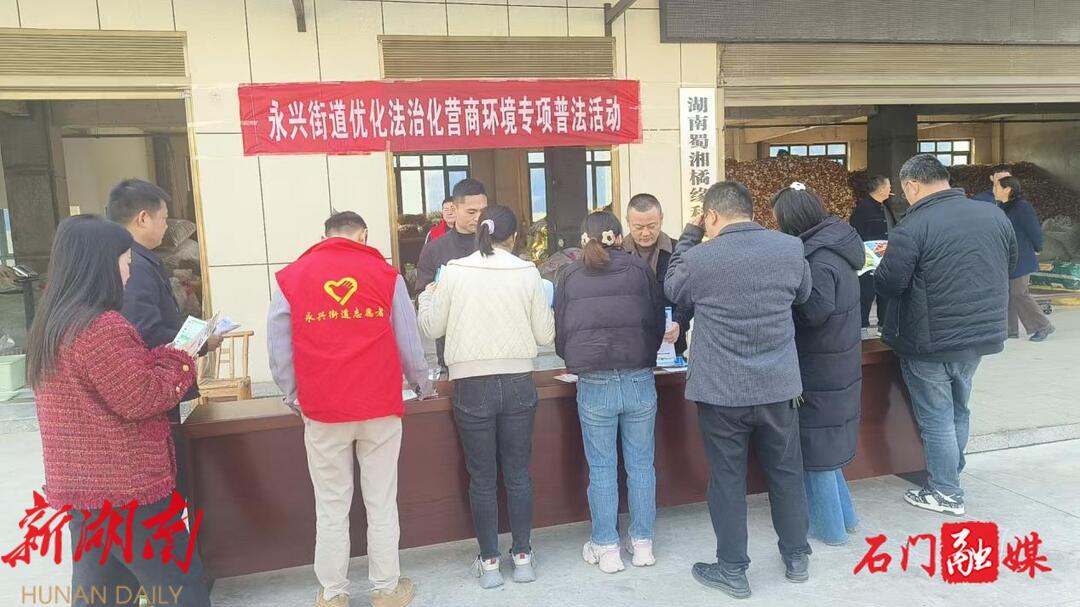 新石门客户端3月19日讯(通讯员 丁毅 胡文波)3月17日,永兴街道平安办工作人员在湖南蜀湘橘缘科技有限公司开展优化法治化营商环境专题普法活动。
