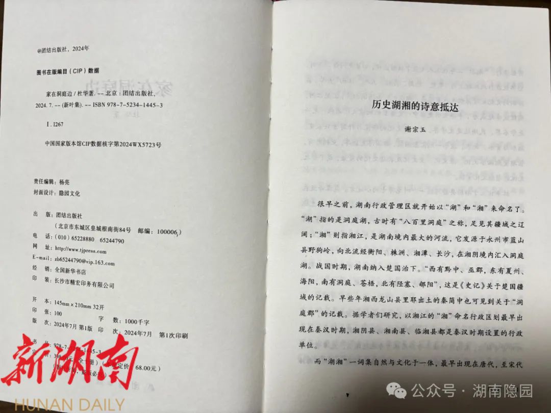 这便是杜华的故乡,也是杜华文学创作的背景底蕴。生于斯,长于斯,杜华受这片沃土多元文化的滋养与熏陶,笔下湖湘气质天成。她写湖湘的山水,人物,民俗风情和历史文化,集松之静谧、水之灵动、野之阔美于一体。散文集《家在洞庭边》以洞庭湖为原点,向全域展开,全书分为“心驰”“行踪”“写真”三小辑,每一篇都情趣饱满,具有身临其境的在场感,呈现出一种原生态散文的生命张力,将故乡体悟筑就自己的文学地理之基。