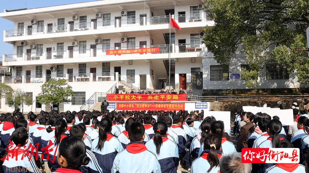 衡阳县融媒3月19日讯(记者:刘沛林 通讯员:戴明军) 3月18日,栏垅乡中心小学联合县交警大队开展交通安全主题宣传活动。通过现场情景模拟,将“马路”以及日常出行中遇见的各种道路情况“搬”到校内,让师生更直观地学习到交通安全知识,筑牢乡村学校交通“安全墙”。
